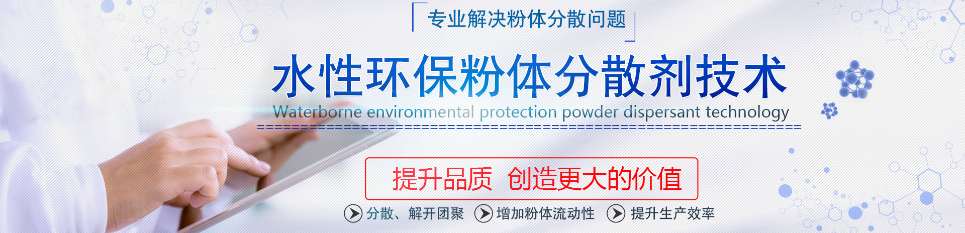 > 水性分散劑在建筑油漆涂料中應用 2018-08-31> 分散劑在油漆涂料中劑的應用解讀 2018-07-30> 顏料分散劑對顏料色漿分散的原理 2018-07-30> 粉體分散劑對塑料粉體進行改性的原理 2018-07-27> 管材改性劑,管材分散劑 2018-07-21查看更多... -